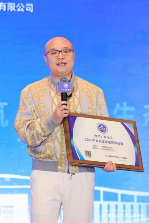 卓木王凭借其作为“红木整装第一品牌”的绝对领导力与持续定义行业标准的能力,同时斩获“2025红木家具十大影响力品牌”和“2025红木整装定制热门品牌”两个大奖,并作为行业唯一品牌蝉联“2025中式高定家居领军品牌”称号。卓木王总裁杜长江亦再度获颁“2025红木家具领军企业家”殊荣,彰显作为“红木整装第一人”的行业地位与持久影响力。