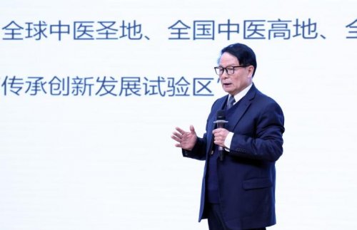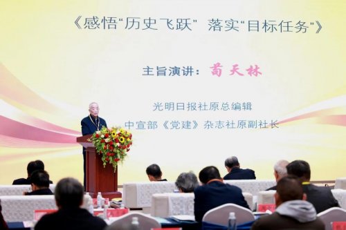 光明日报社原总编辑苟天林发表《感悟“历史飞跃” 落实“目标任务”》的主旨演讲;苟总编指出:实现了党和国家在新时代对中医药认识的历史飞跃,开辟了中医药事业传承创新发展的大好时机,这是打造全球中医药圣地的目标任务的根本遵循和指南。